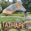 The store is not a natural cave or rock cavity, Hollow Mountain was built in 1984. The hill in which it is located once extended to the highway before Harry Thompson (owner) blasted the hillside back and hollowed out the rock. With the exception of where rock are exposed near the restrooms, the store itself looks like most convenience stores inside. Velociraptors were placed near the entrance to complete the puzzle. You can find hollowed-out rocks as living quarters in other parts of Utah but this is the only convenience store using Utah’s sandstone and rock .