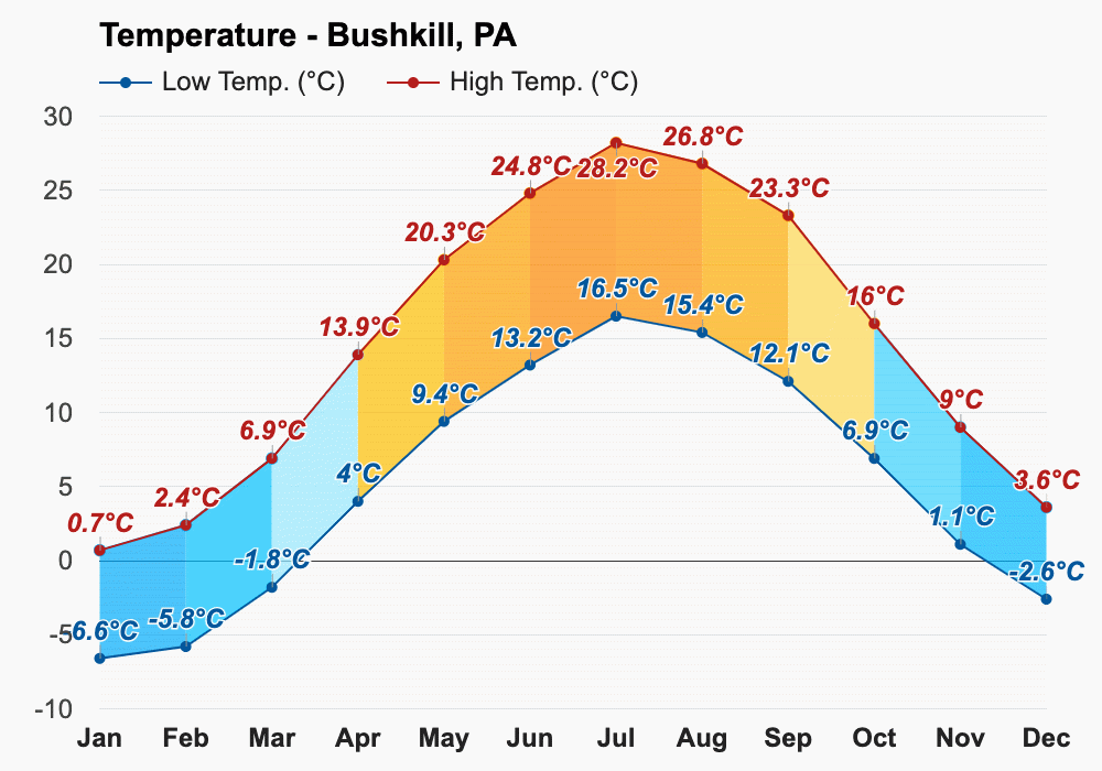 Pennsylvania’s weather is very similar to that of New York or New Jersey. It’s changeable, with moderate precipitation all year long, with some heat waves in the summer and cool weather in the winter and early spring. Snow is concentrated in the winter months.
